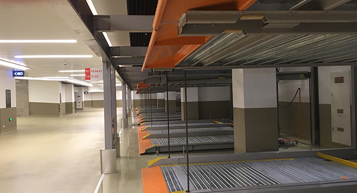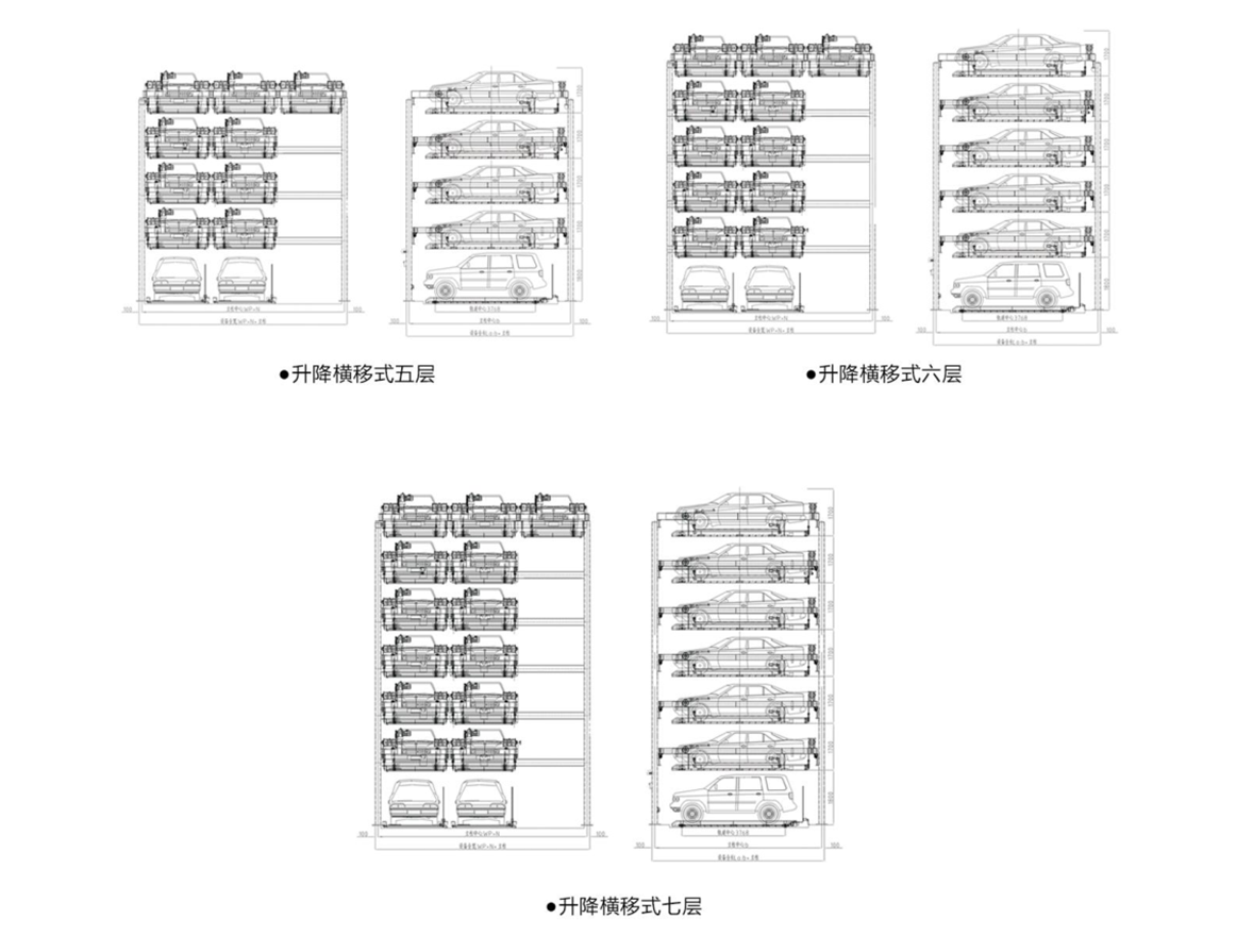 PSH升降横移车库,将平面停车场向上扩展。是目前较为普及的一种立体停车设备,可以依照地形及场地特点采用不同型式的停车方式。